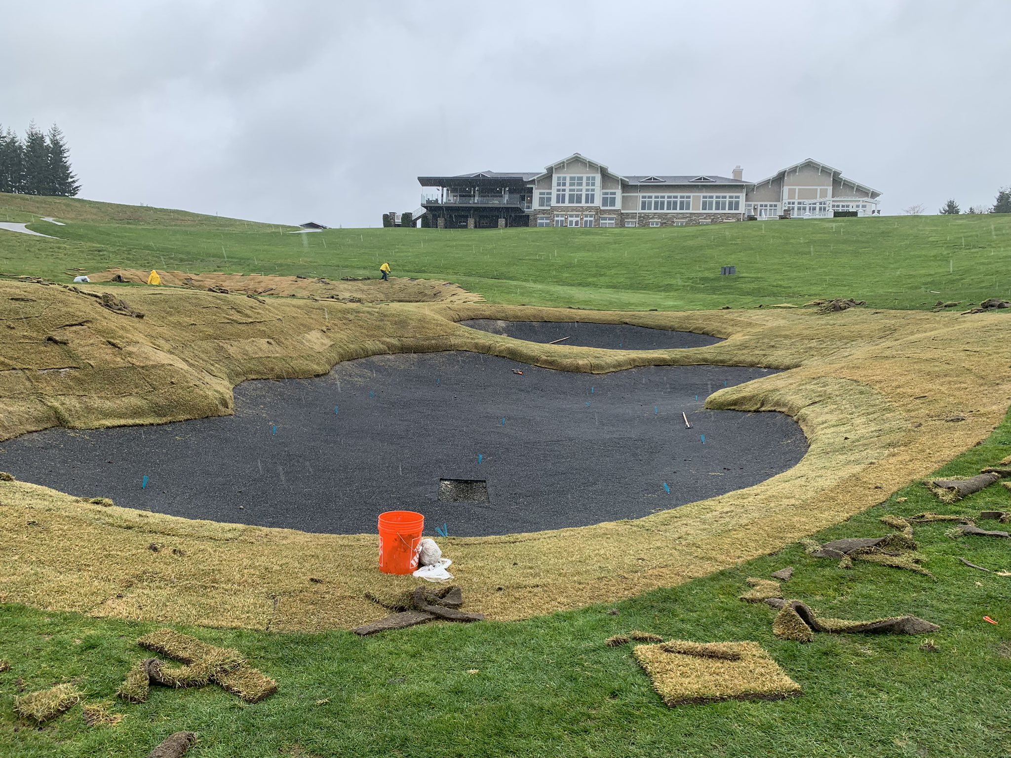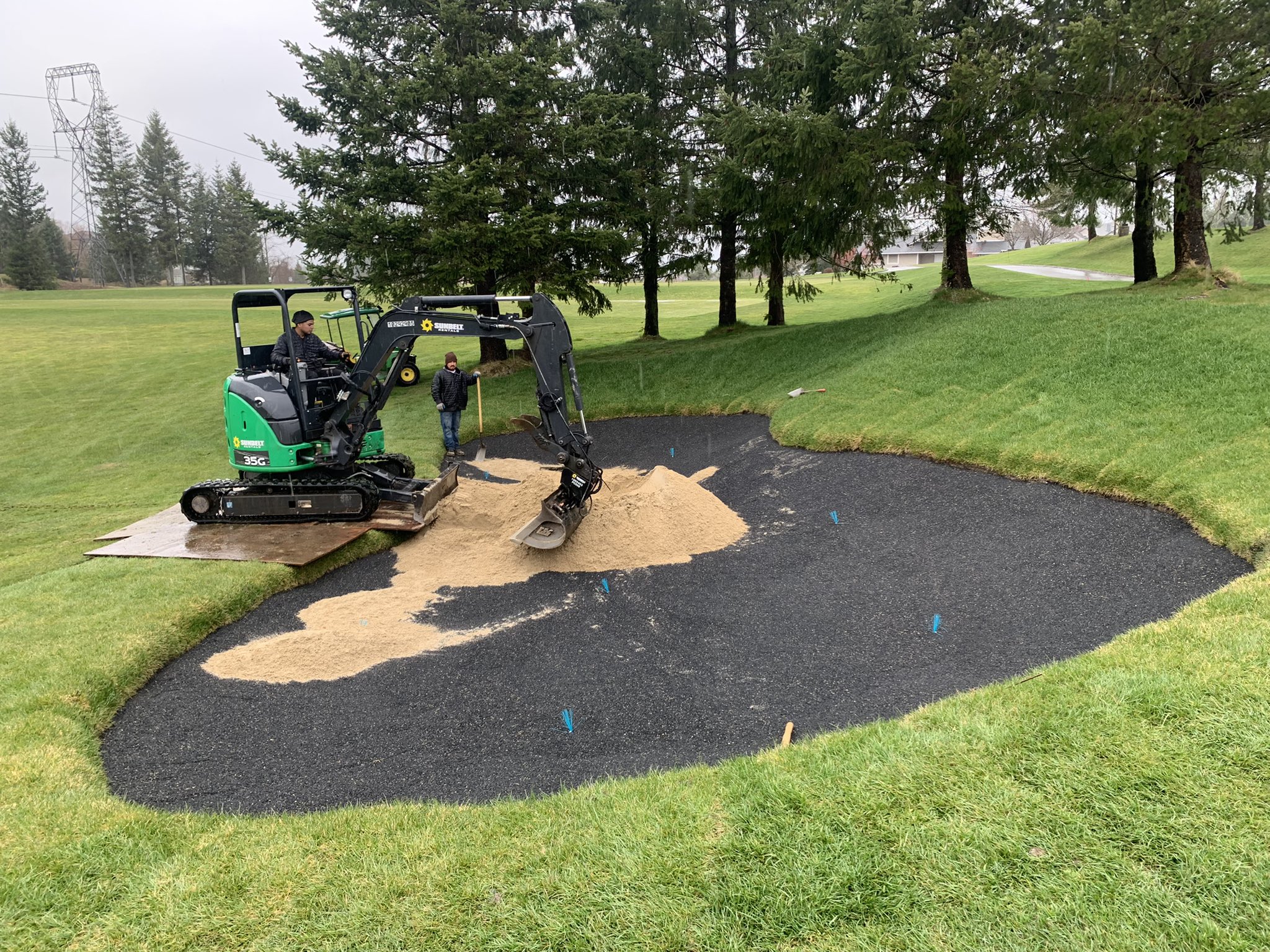 SG was selected for use, since Arcis Golf has seen its superior performance on other projects of theirs. Since the course is in Washington State outside of Seattle, it experiences excessive seasonal wet weather and damp soils, SG was their go to bunker liner poured-in-place product.
